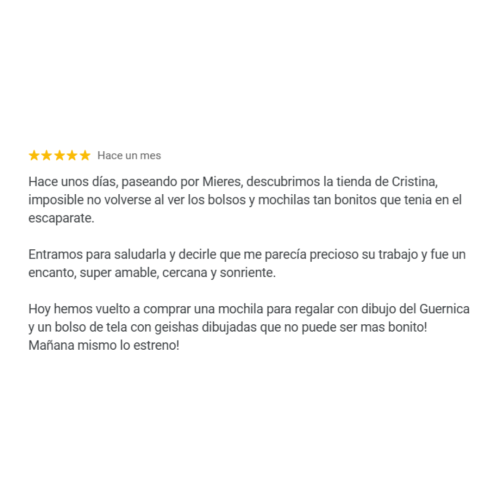 Pienso cada mochila y cada bolso con muchísimo mimo, utilizando materiales que vienen de pequeñas tiendas, porque creo firmemente en el poder del comercio de cercanía, en la importancia de apoyar a quienes trabajan con honestidad. Me gusta saber de dónde viene cada cosa y apoyar a quienes, como yo, luchan por sacar adelante su trabajo.