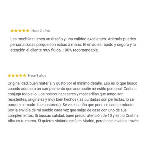 Diseño pensando en ti. Escucho lo que me cuentan mis clientas, sus ideas, lo que necesitan en su día a día, y eso me ayuda a crear piezas que no solo sean bonitas, sino también cómodas y útiles. Por eso siempre digo que Cristina Alba no sólo soy yo, somos muchas personas que con su cariño forman parte de esta aventura.